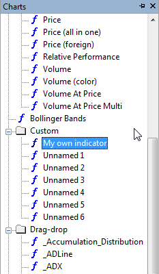 Now the indicator you have just written is displayed as a chart. You can also find it stored as a formula in the Chart tree: