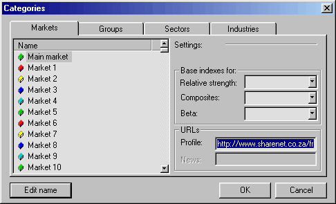 The problem is that the database provided by Sharenet uses long ticker names, and JSECODE is a short symbol code. For example, for the "Accord Technologies" company, the ticker in the Sharenet database is ACCORD, but the code is ACR. To solve the problem, we will need to use the Web ID field in the symbol Information window. If you have the Sharenet database, just choose ACCORD from the ticker list, open the Symbol->Information window and enter ACR into the Web ID edit box, and click OK. Then please open the Symbol->Categories window and enter the following URL template into the Profile URL edit box: