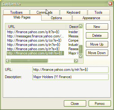 You can also delete any entry by selecting it from the list and pressing the Delete button. You can change the order in which pages appear in the Web Research address combo box using the Move Up and Move Down buttons (select the item first and then use the buttons).