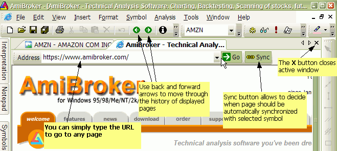 Then AmiBroker uses its built-in web browser (Web Research window) to display the contents of the page.